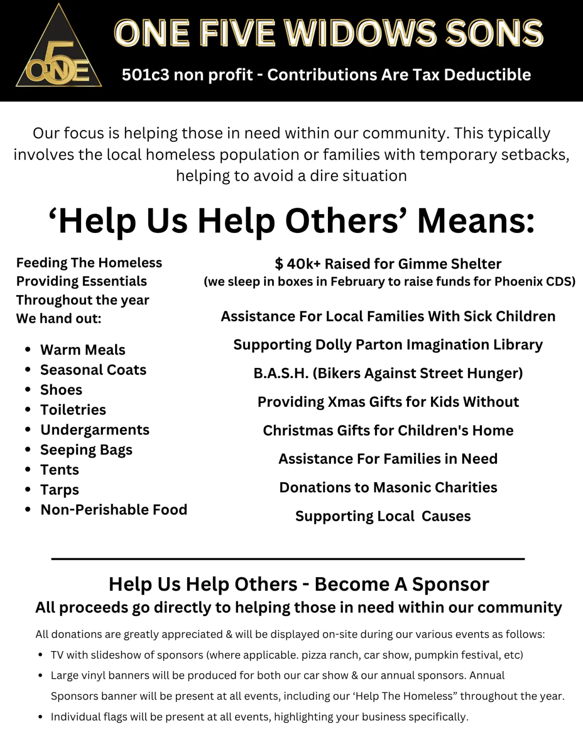We're fortunate to receive support from local businesses who want to help us in making a difference to those in need within our community. Working together, we're able to do great things!